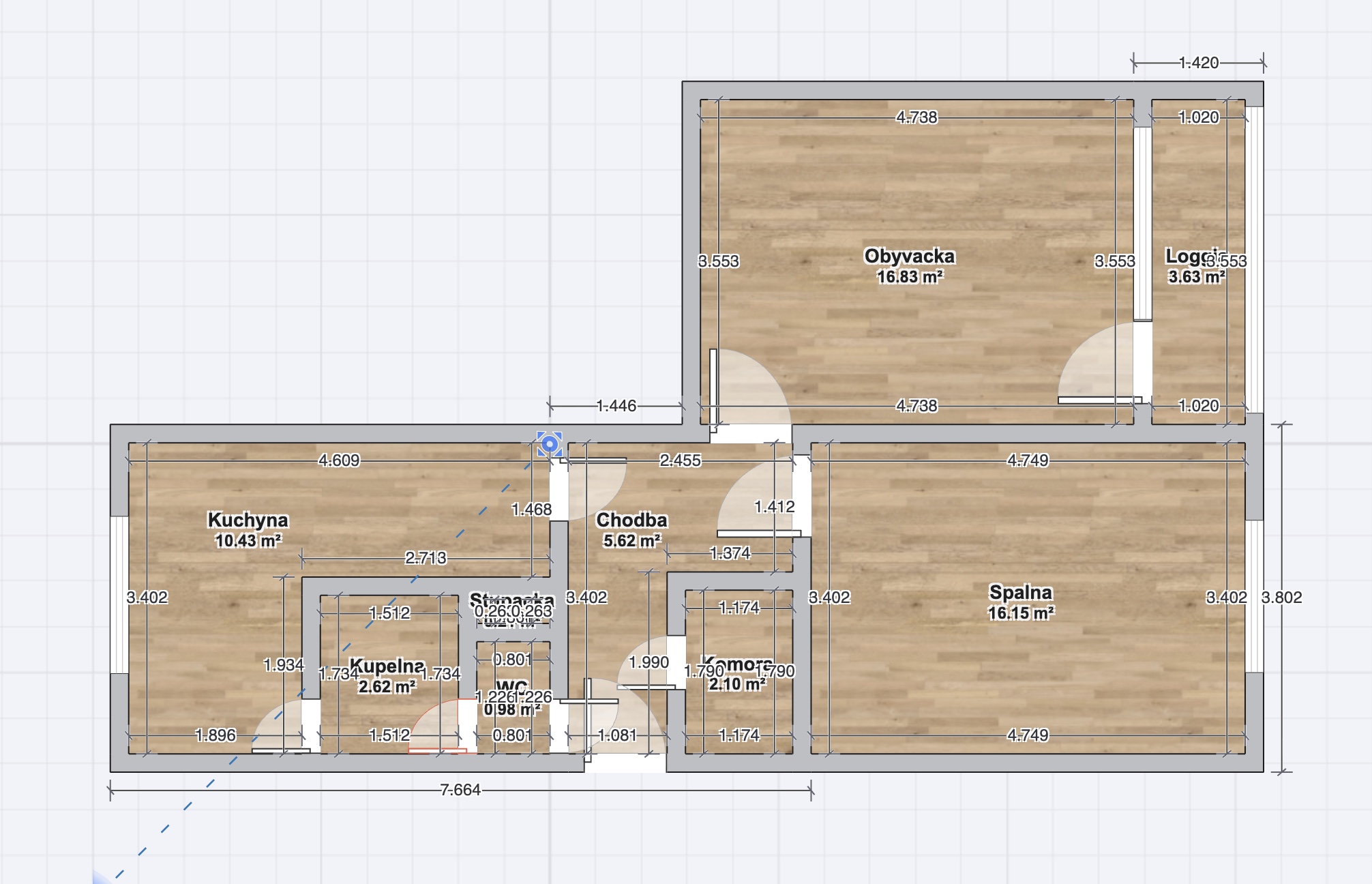 Byt má výmeru 61,2 m² (podľa Listu vlastníctva) vrátane pivnice + loggiu cca 3 m².